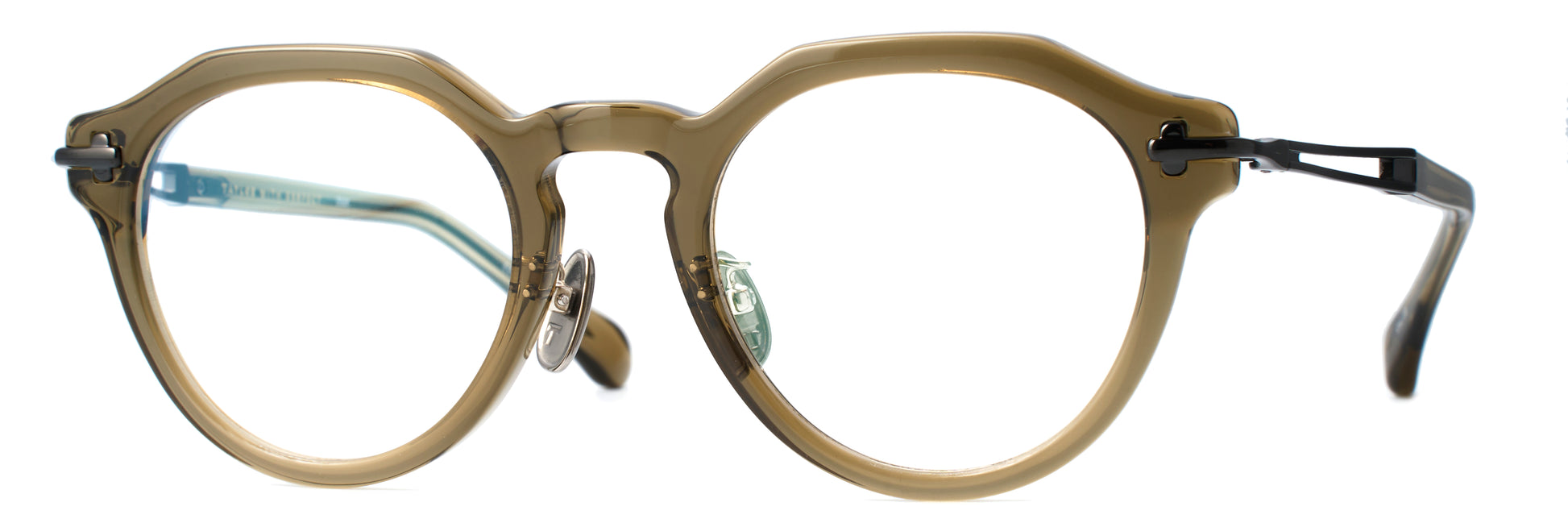 【参考上代:¥58,300】砂丘(dune)から見える地平線をモチーフにした太めのクラウンパント。一見オールプラスチックに見えるフロントの外観に、調整のしやすく掛けやすいメタルのテンプルを掛け合わせたデザインとなっています。このハイブリットな組み合わせは、前コレクションで発表しご好評をいただいたボースと同じスタイル。フレーム名「dune」には、ホドロフスキーの未完の大作、映画『DUNE』へのオマージュとして、ダブルミーニングな思いも込められています。