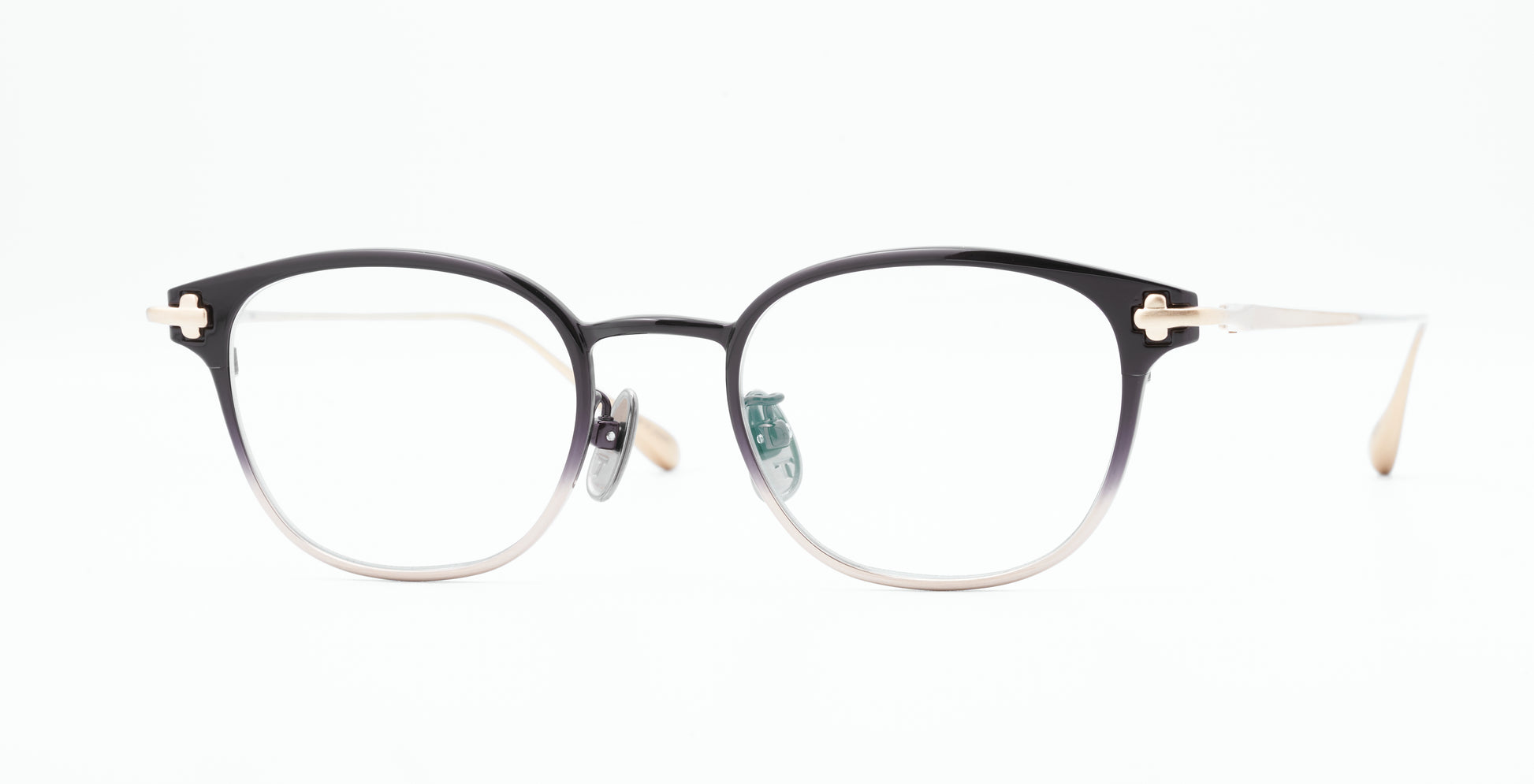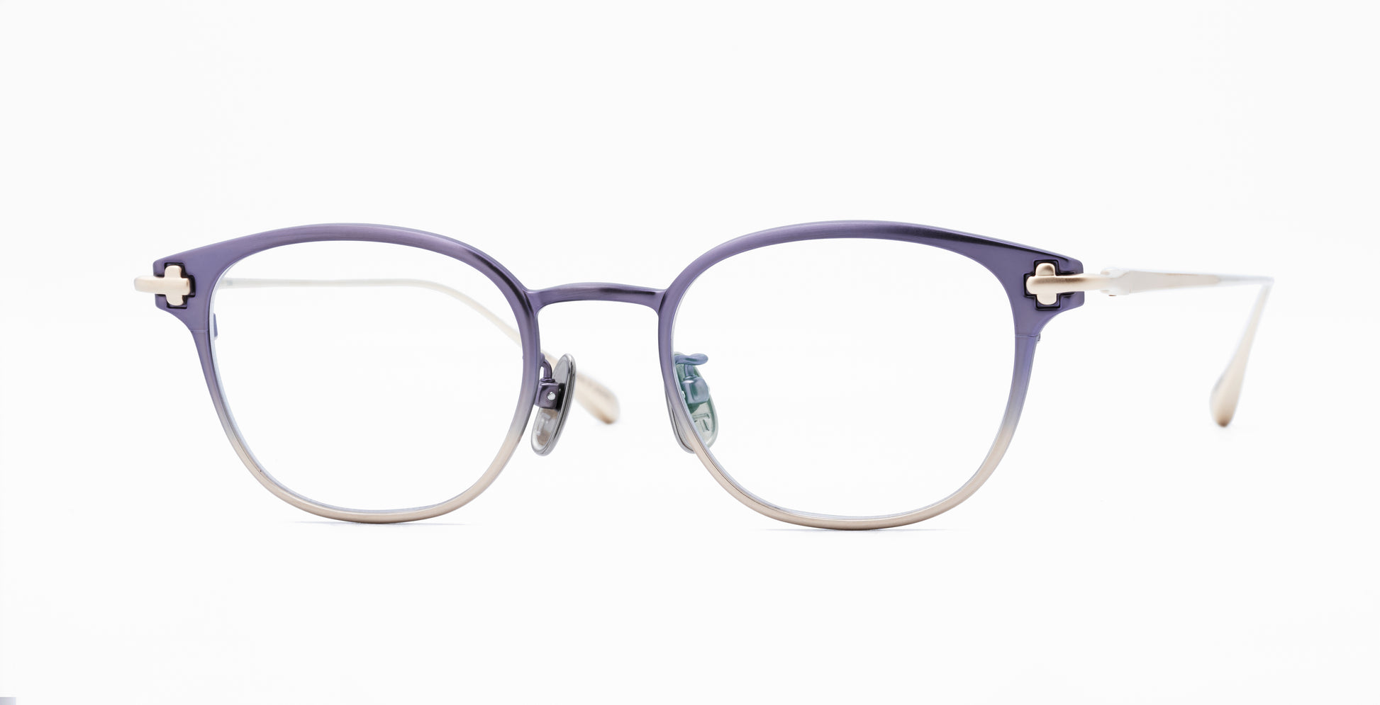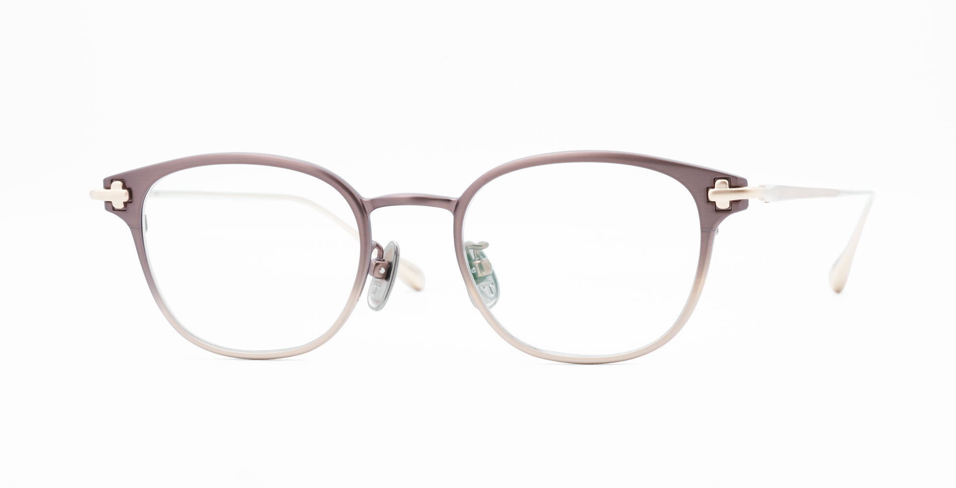 【参考上代:¥55,000】滑らかな曲面を持つフロントが美しいフレームmellow。一般的に冷たく硬い印象を与えてしまうチタン素材ですが、金型設計に拘り、手間と加工時間をかけることで、柔らかな印象になるようデザインしました。メタル枠でありながらも、顔に溶け込むような曲面を持つ、柔らかな造形に仕立て上げました。